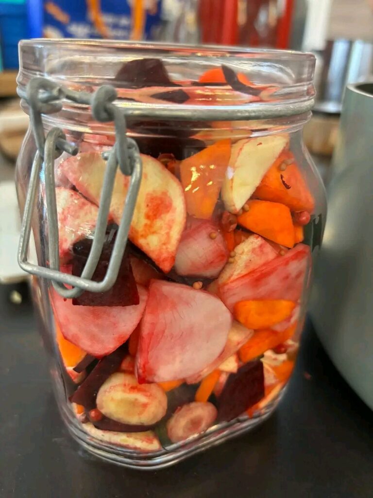 Gewapend met wortels, kolen, bieten en kruiden begonnen we aan het snijden, raspen en mengen. Iedereen bracht zijn eigen smaakmakers mee: van klassieke kombu en zout tot verrassende combinaties met kruiden en specerijen. Zo ontstonden er unieke fermentaties, op maat van ieders smaak!